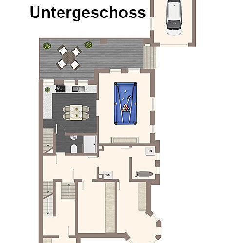 - Zusatzräume: Großzügiger Hobbyraum, vier Abstellräume und eine separate Waschküche