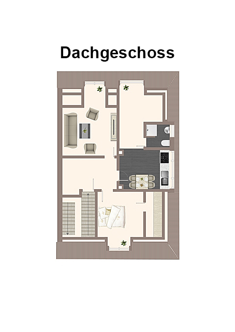 • Dachgeschoss (ca. 80 m²): Gemütliche 2,5-Zimmer-Wohnung, ideal als Rückzugsort oder Atelier, ebenfalls frei nutzbar.