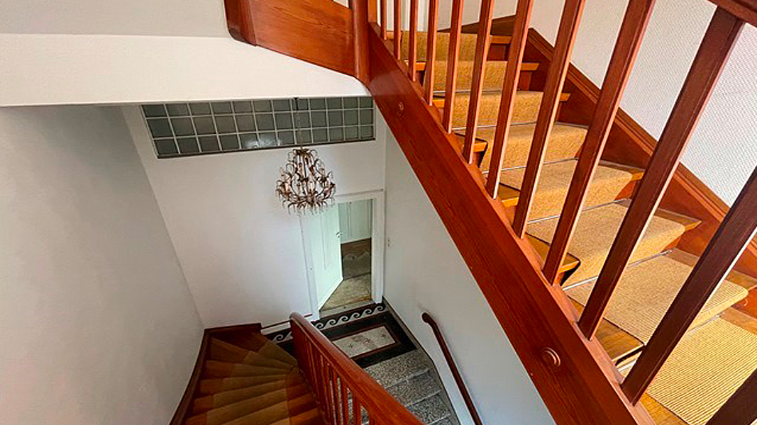 - Treppenhaus: Ein echtes Schmuckstück – originale Terrazzo-Fliesen und eine imposante Holztreppe